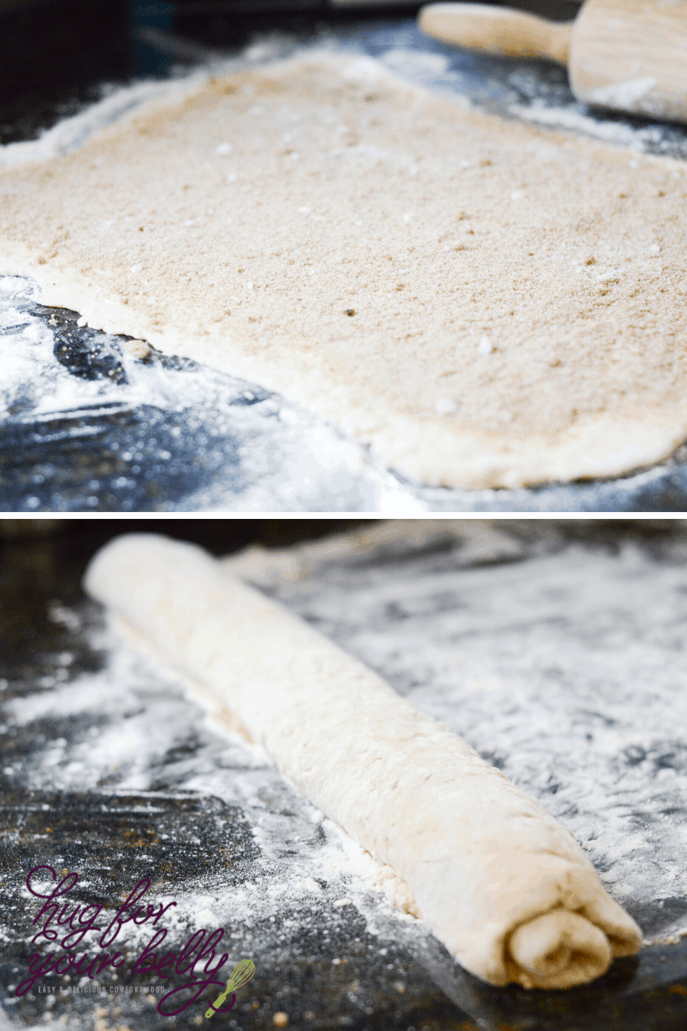 - Roll dough up, and slice.
